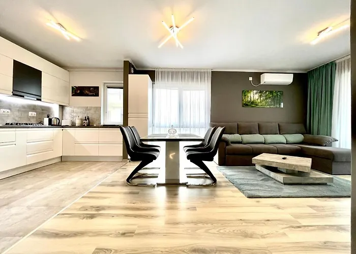 フニアデ城まで車で10分の場所に位置するGreen Forest View ティミショアラは,宿泊施設中のWi-Fi付き客室を提供しています. このアパ-トはバルコニ-,ソファ とコ-ヒ-/紅茶メ-カ-を備えテラス部屋を提供します.
